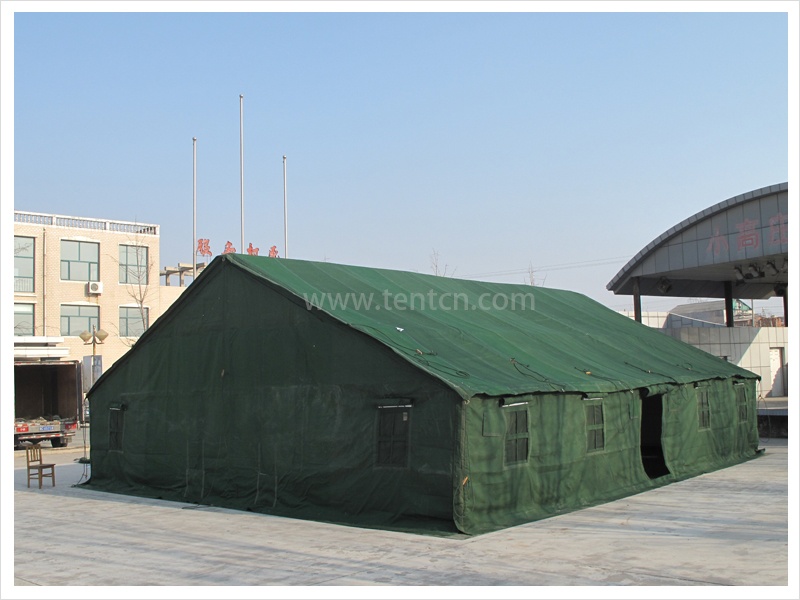 該帳篷穩(wěn)定性優(yōu)良,抗風(fēng)承載能力強(qiáng),安全可靠。結(jié)構(gòu)簡(jiǎn)單,組裝方便,采用套管式通頭、彈簧插銷連接,同類桿件可以互換,無(wú)需任何組裝工具。篷布采用滌綸草綠(林地?cái)?shù)碼)防水帆布,防水效果好。保溫隔熱、通風(fēng)性能好,寒區(qū)、熱區(qū)通用??煽v向拓展,即將兩頂帳篷的一面山墻拆除,拼接成一頂帳篷,使用面積擴(kuò)大一倍。